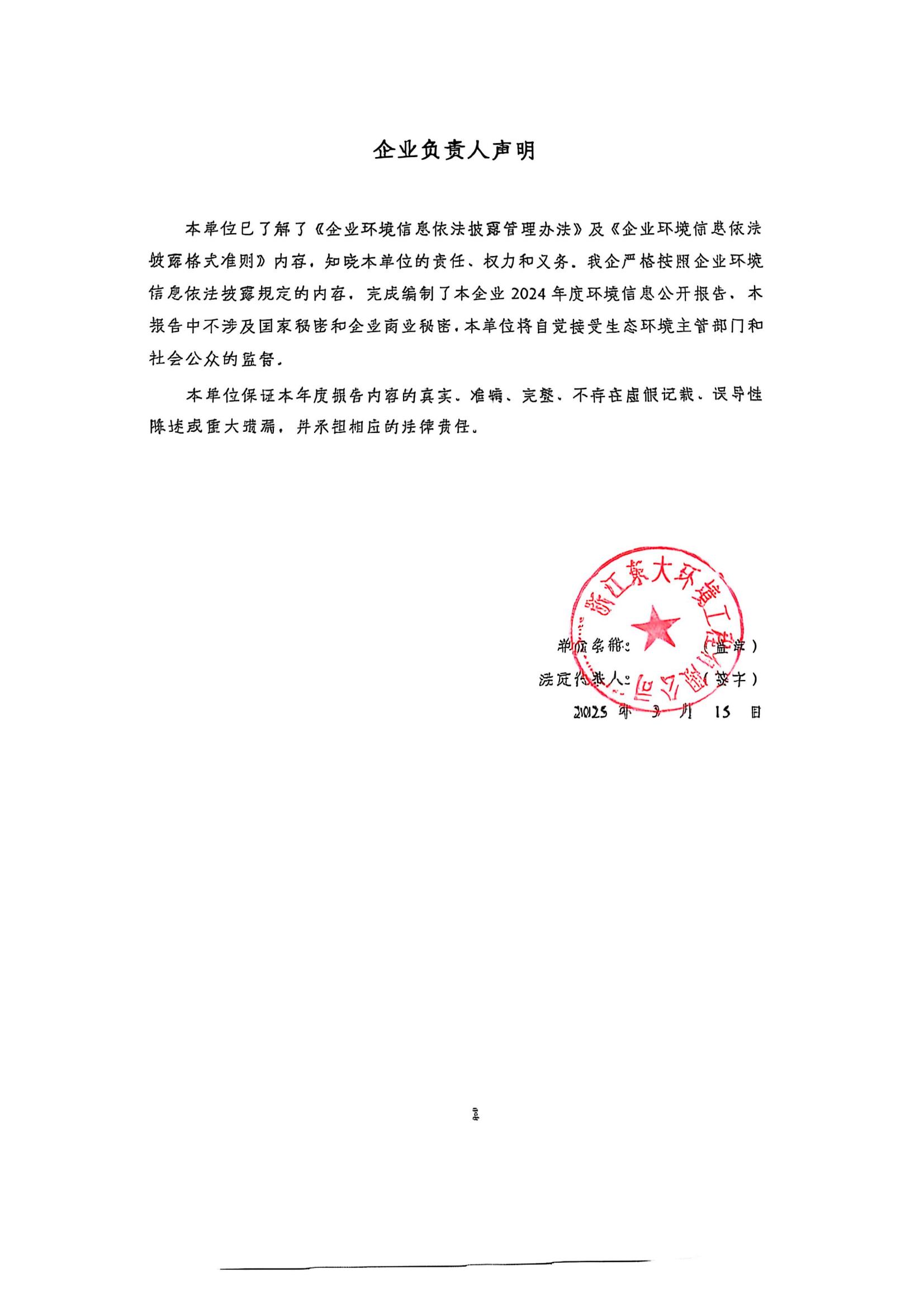 浙江東大環境工程有限公司 2024 年度環境信息依法披露報告
