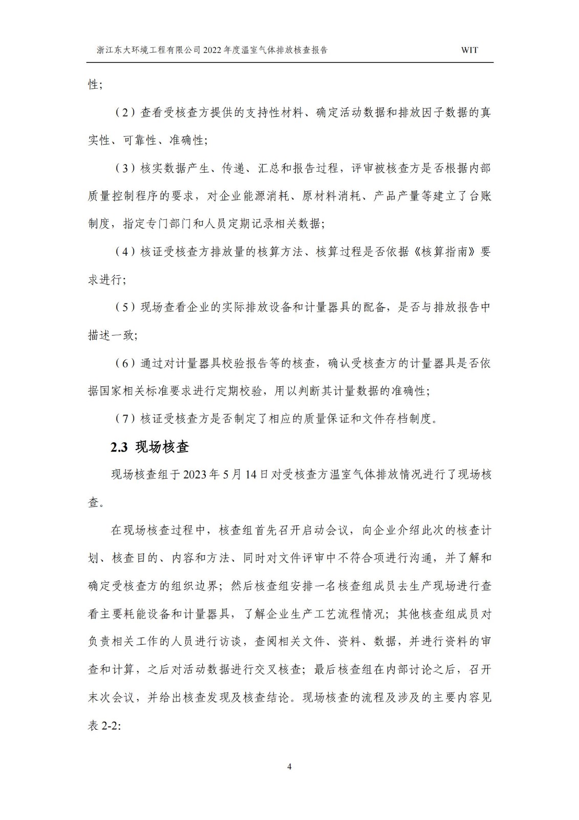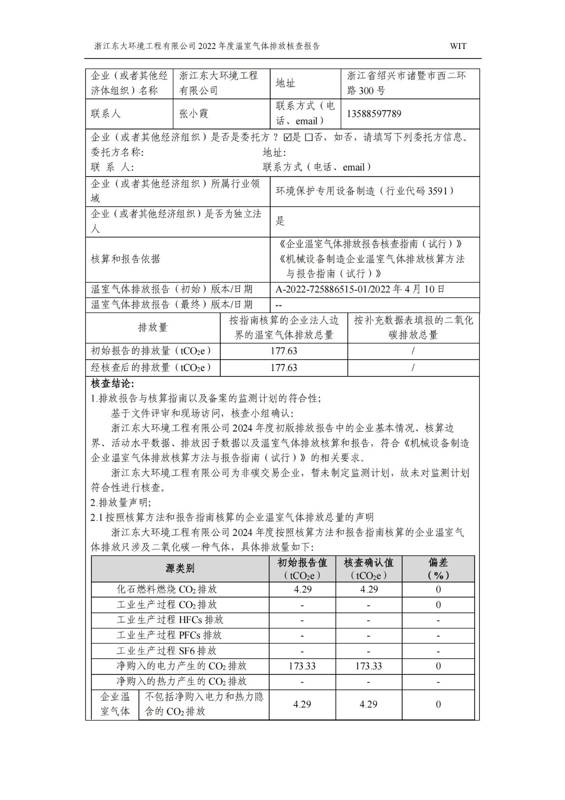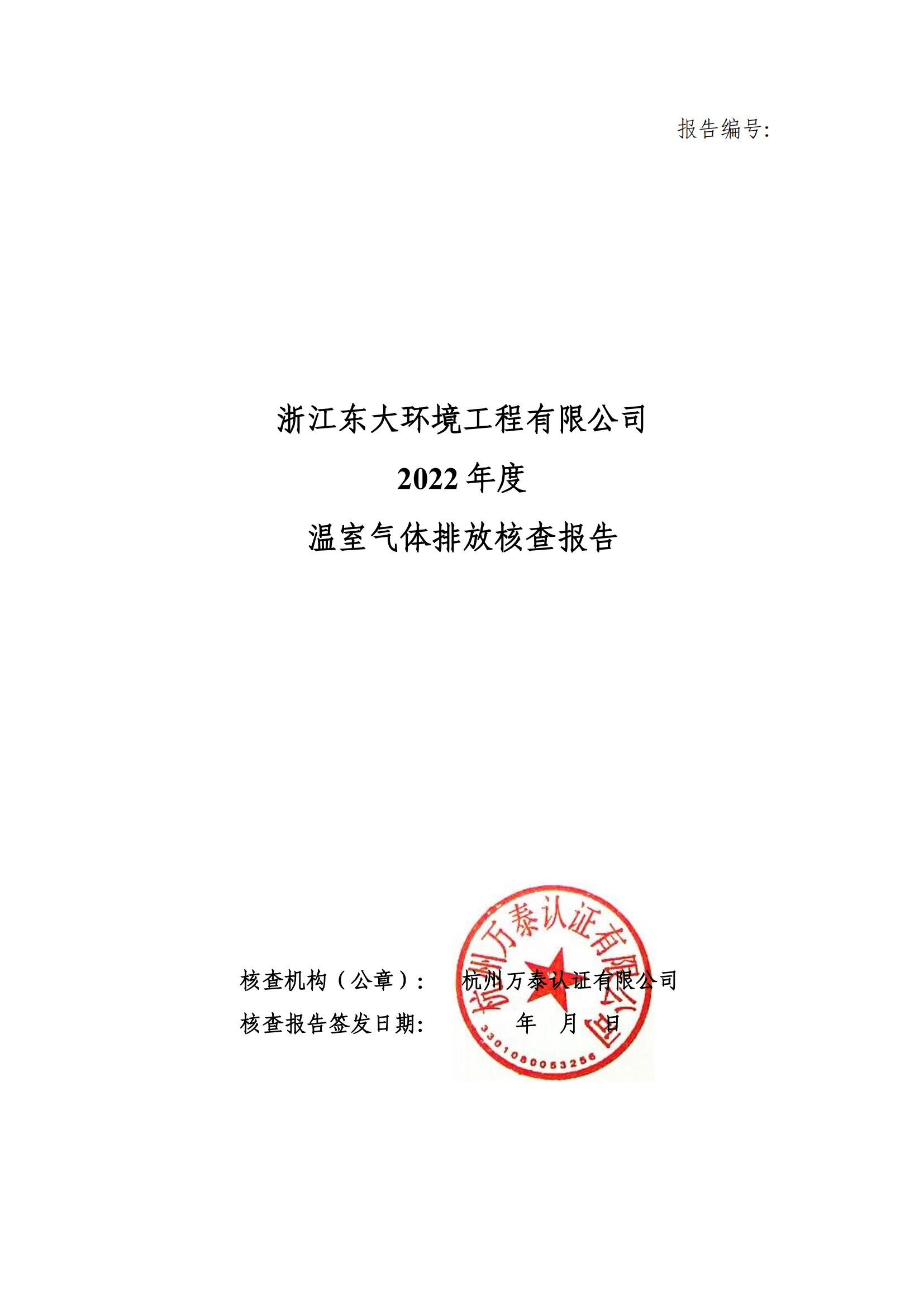 浙江東大環境工程有限公司2022年溫室氣體排放核查報告