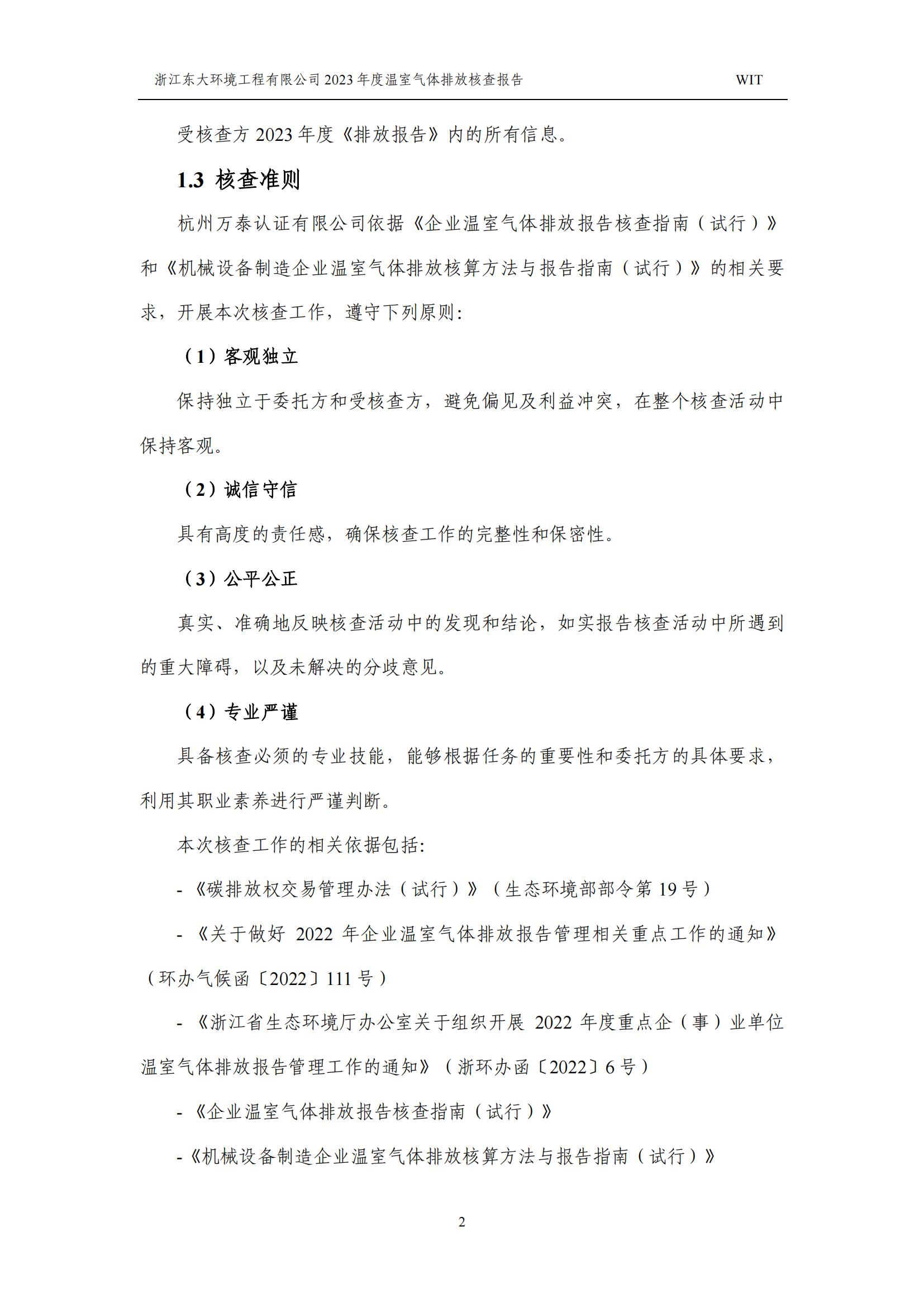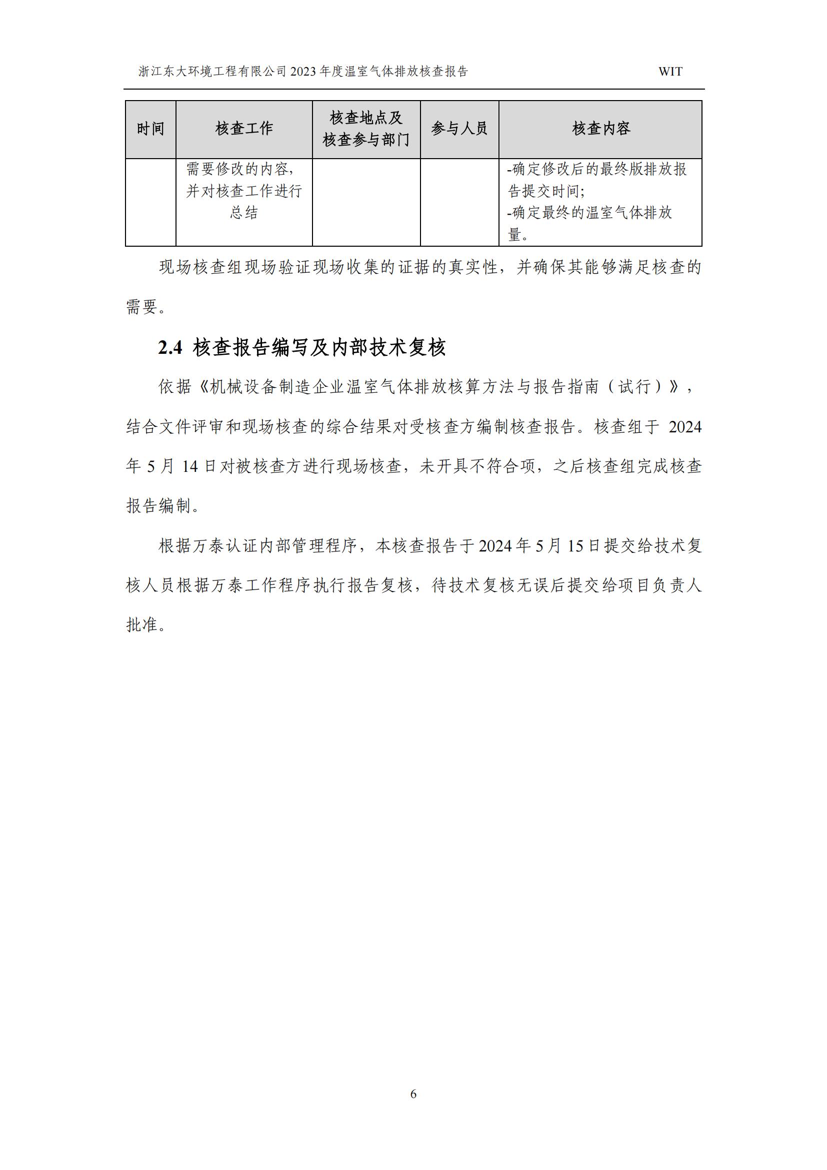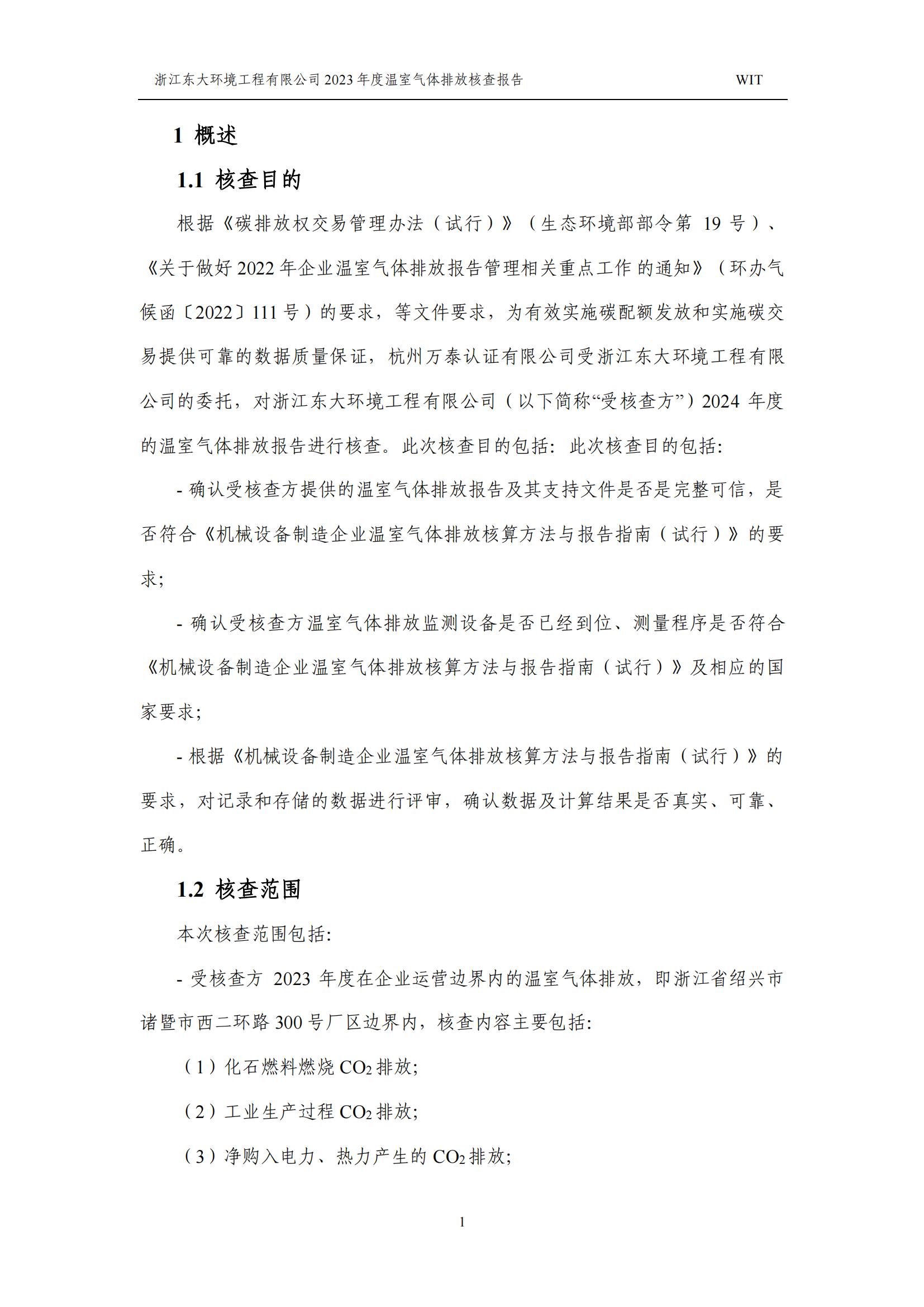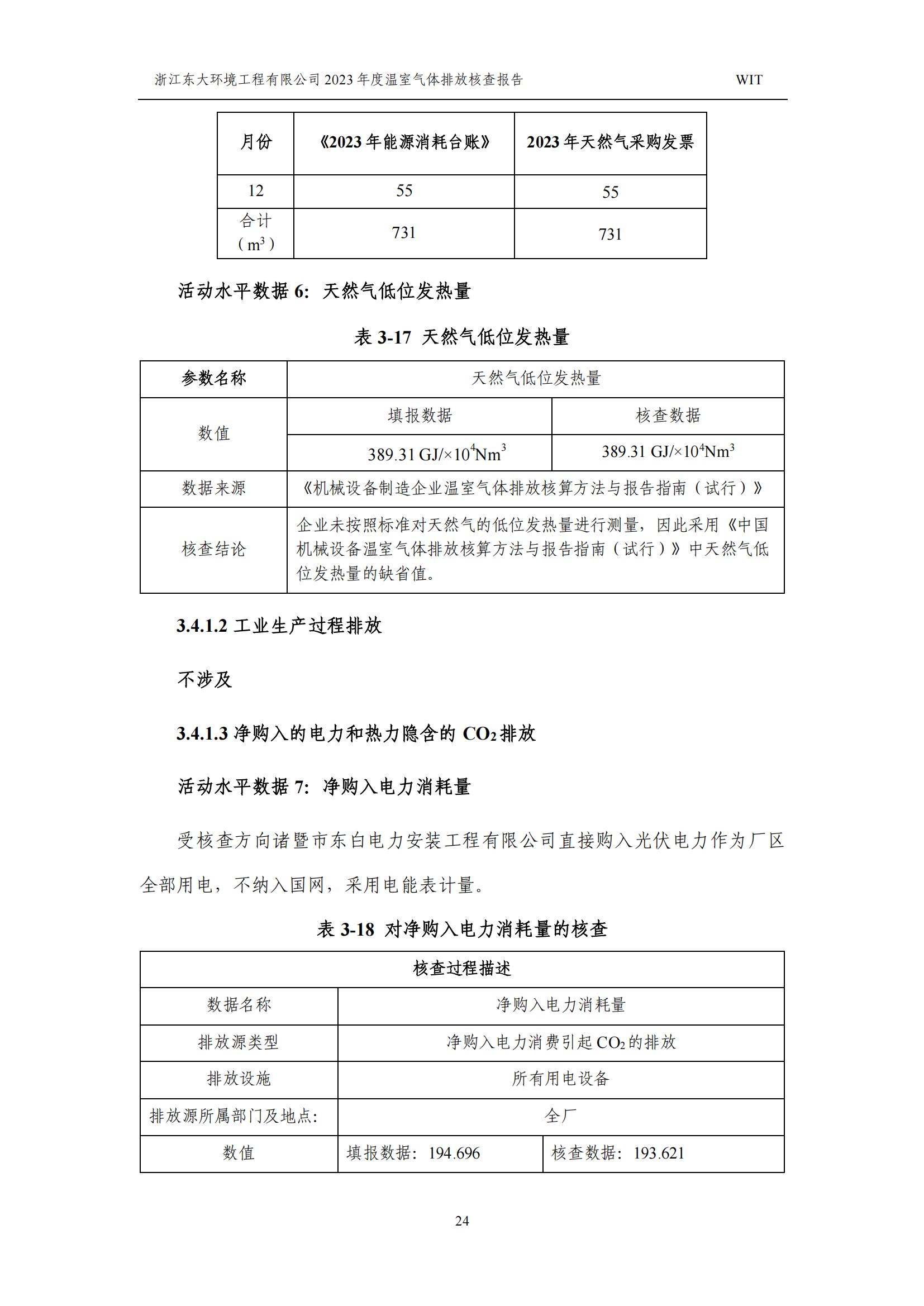 浙江東大環境工程有限公司2023年溫室氣體排放核查報告