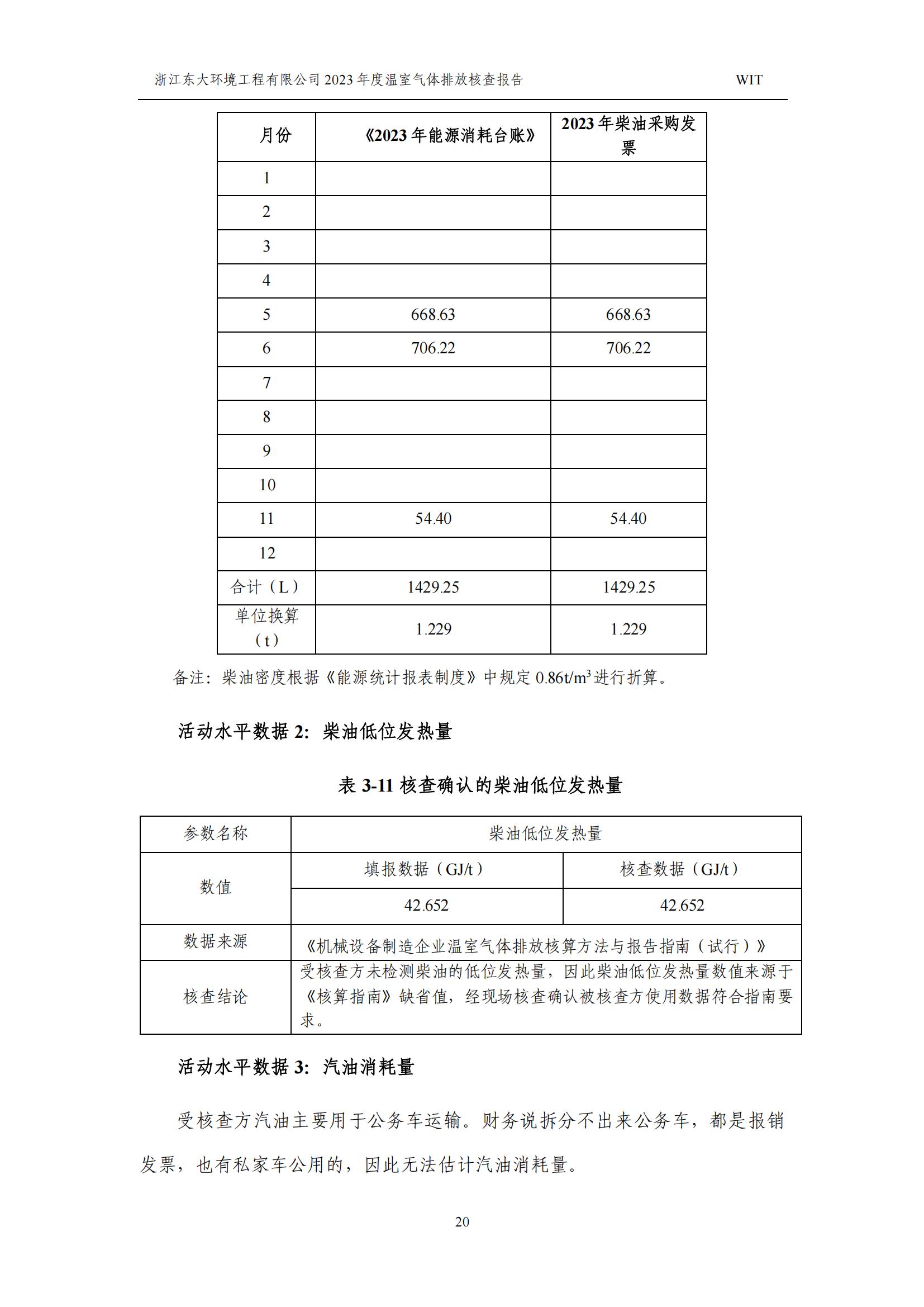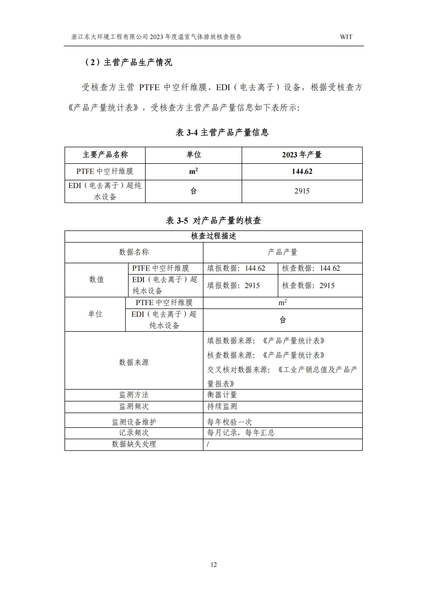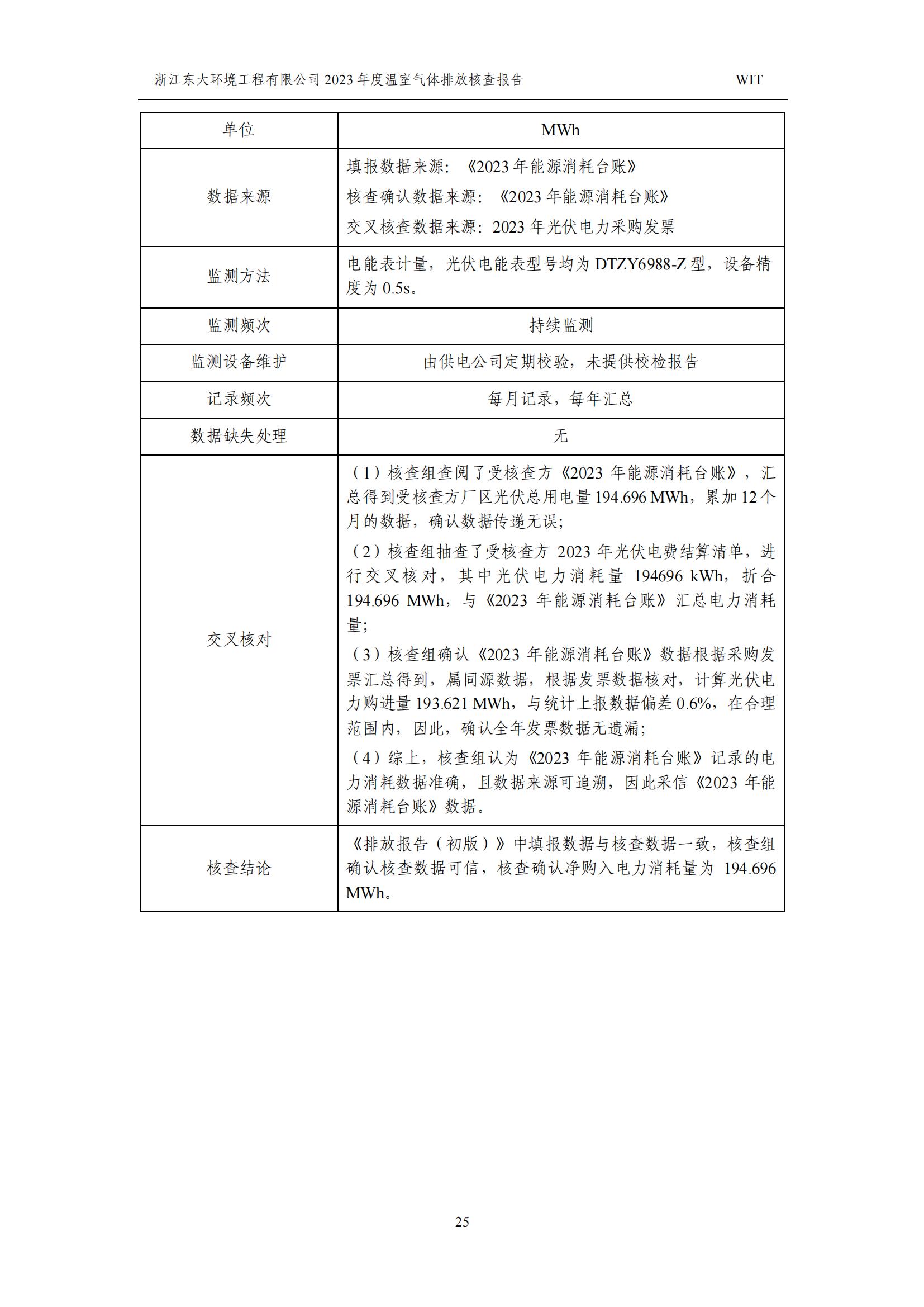 浙江東大環境工程有限公司2023年溫室氣體排放核查報告