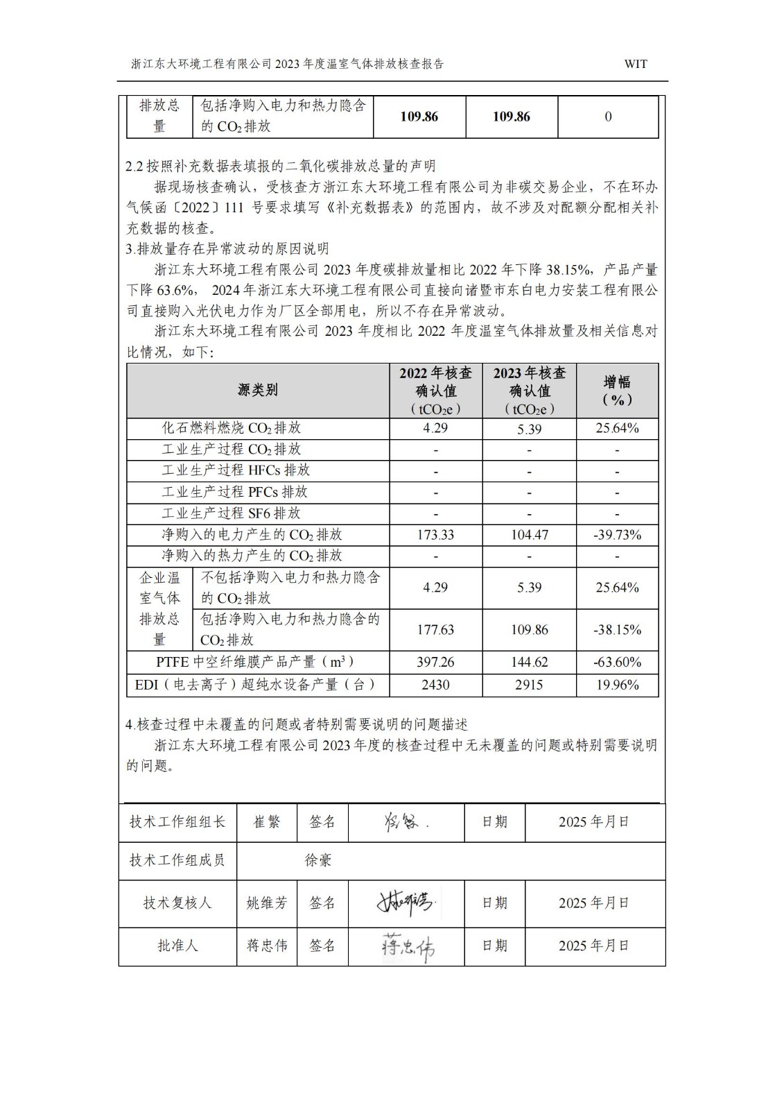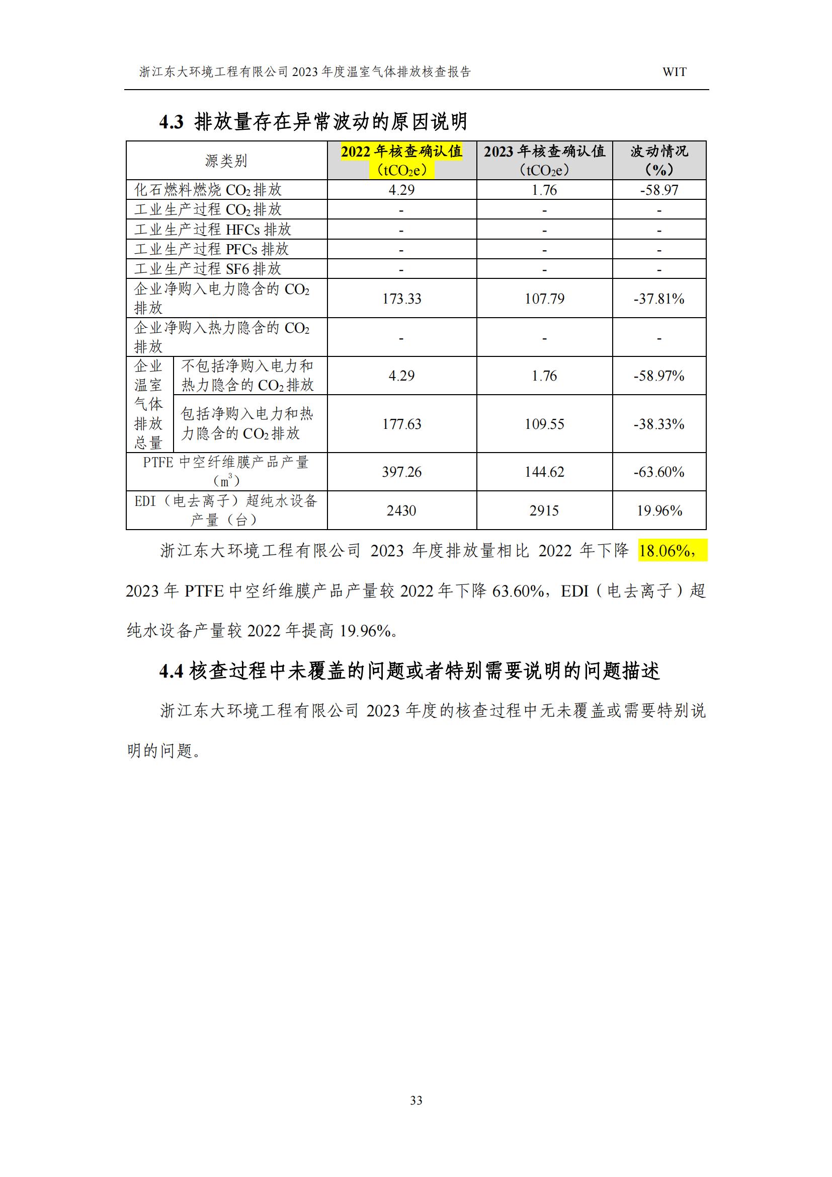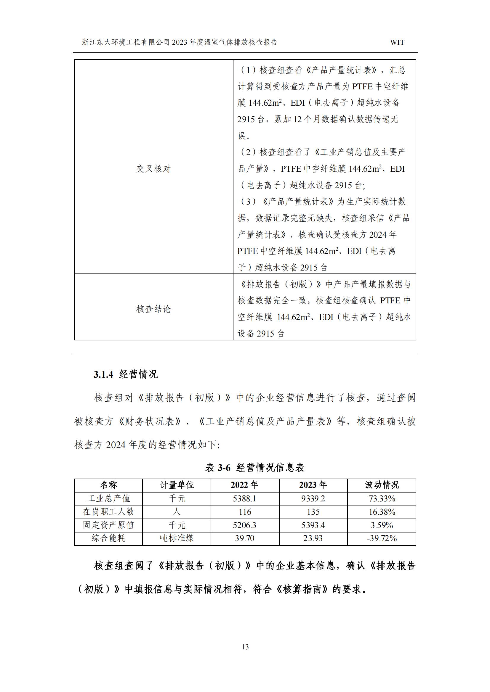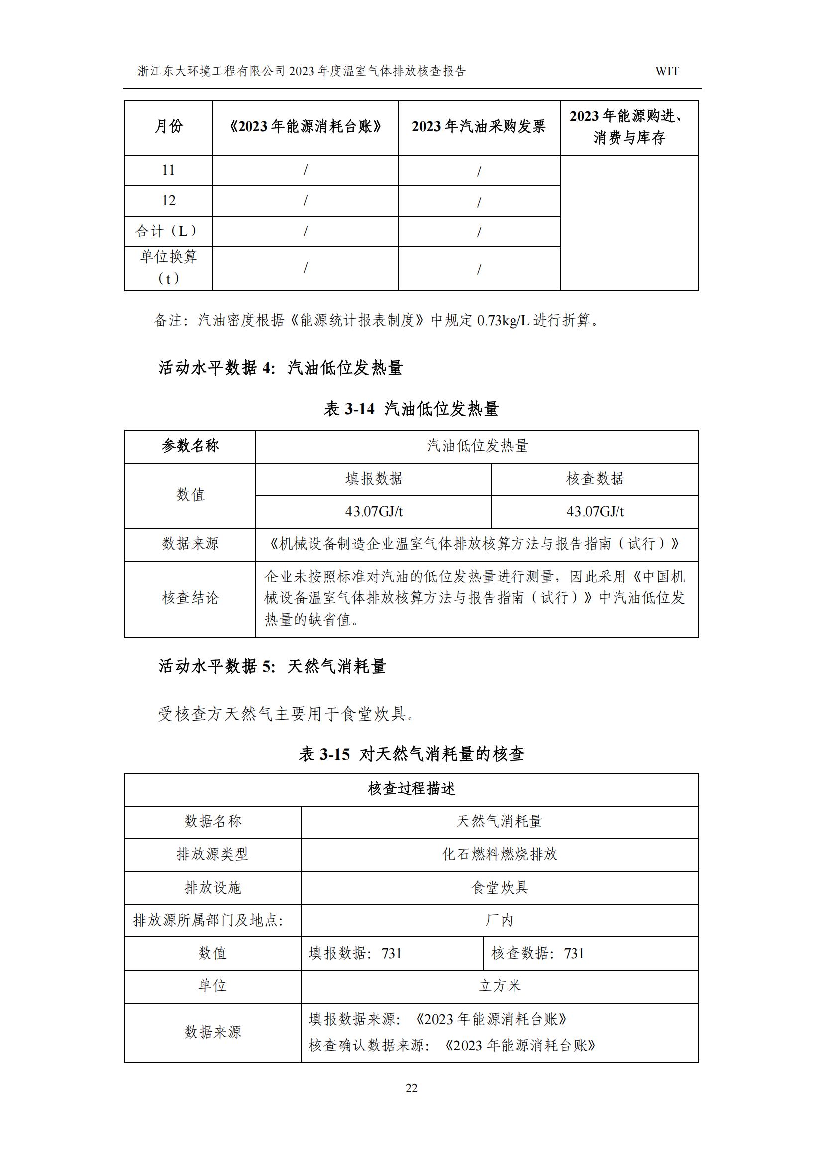 浙江東大環境工程有限公司2023年溫室氣體排放核查報告