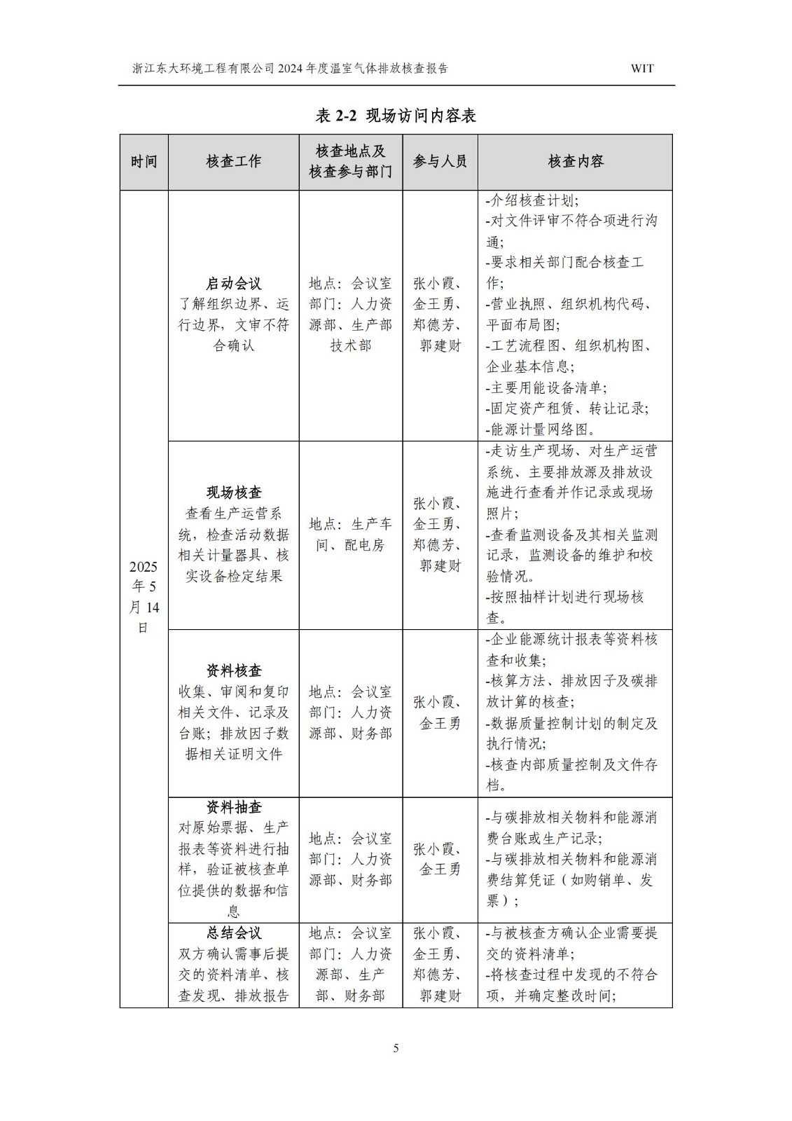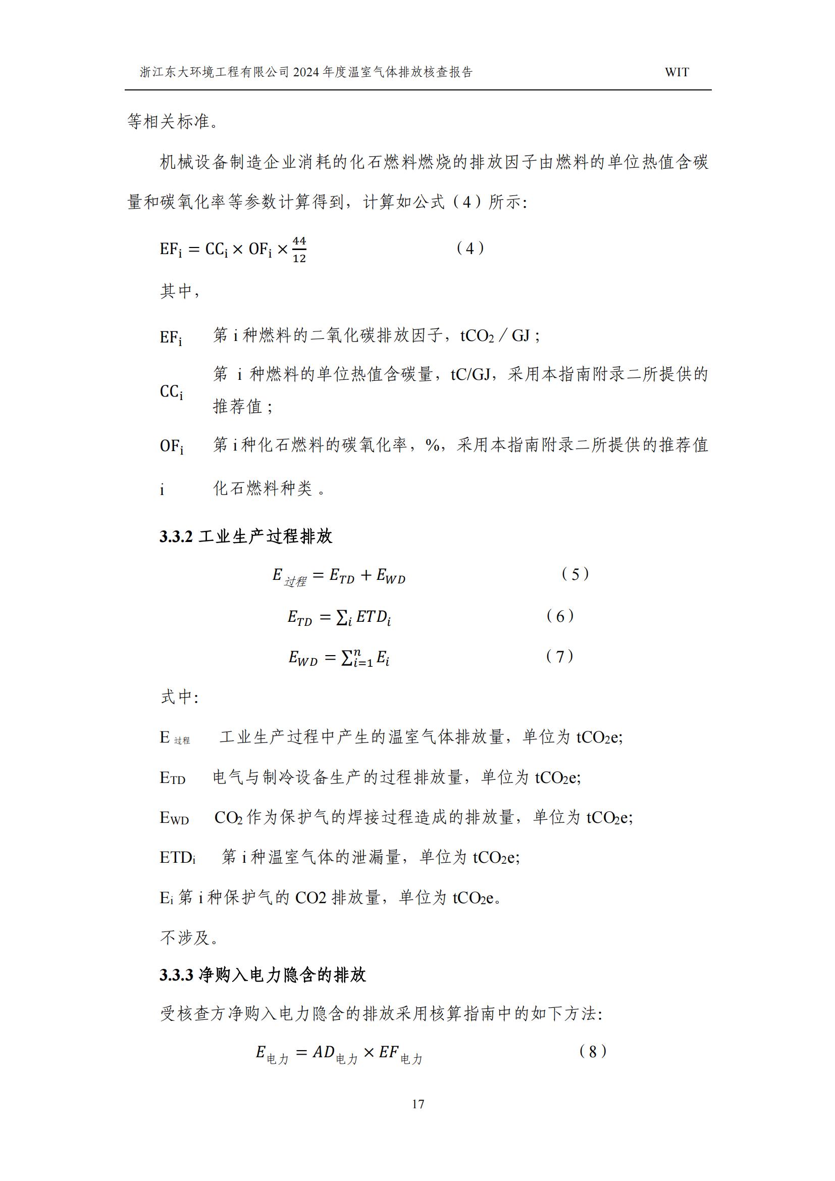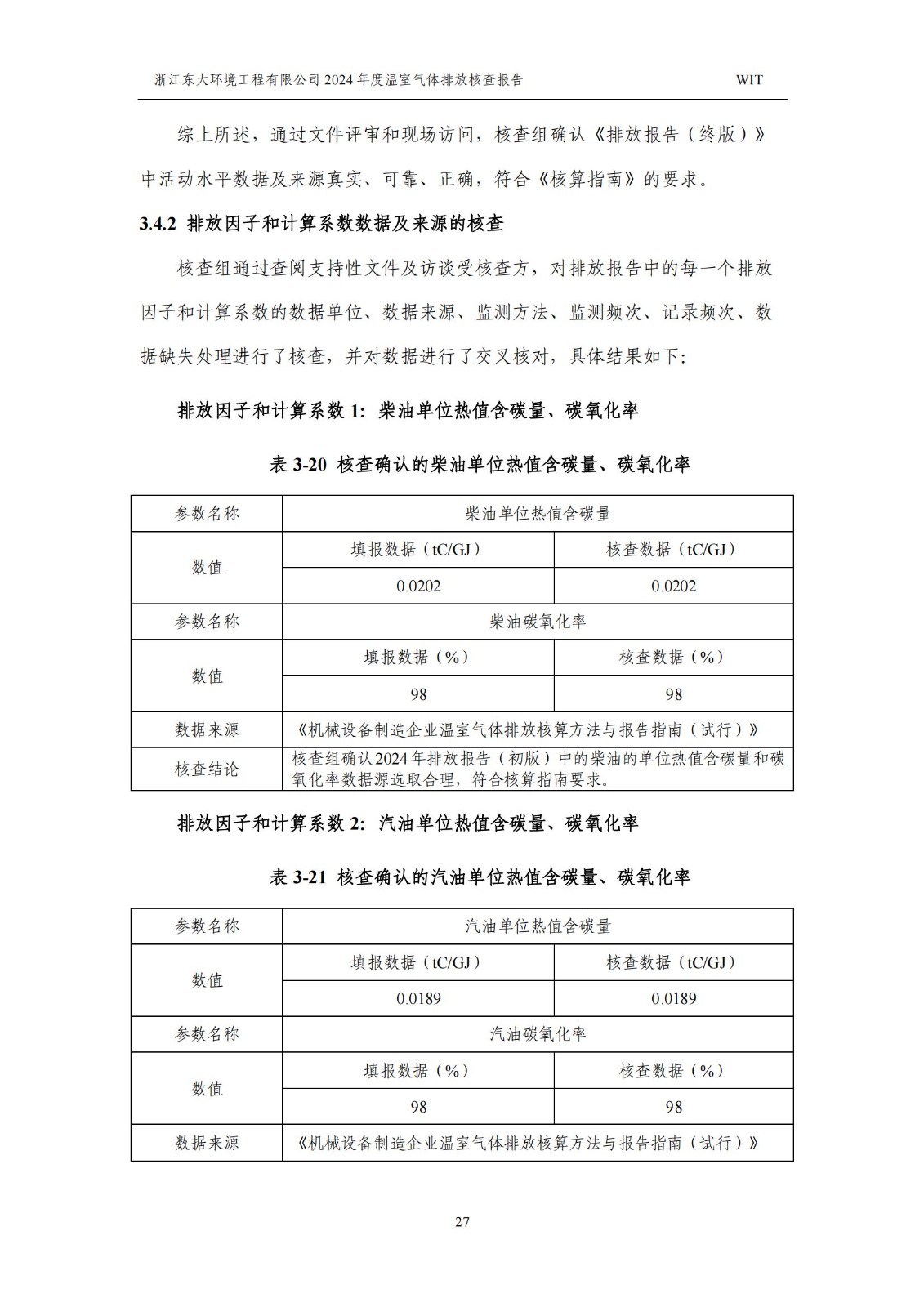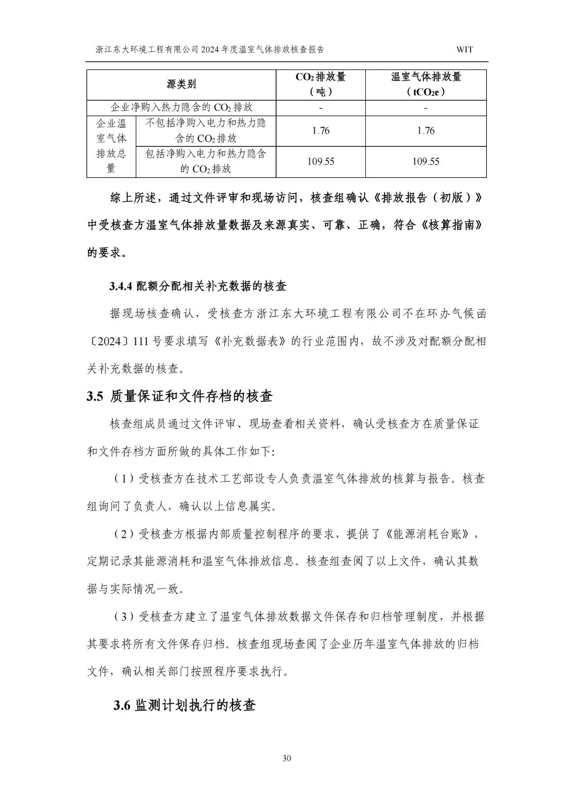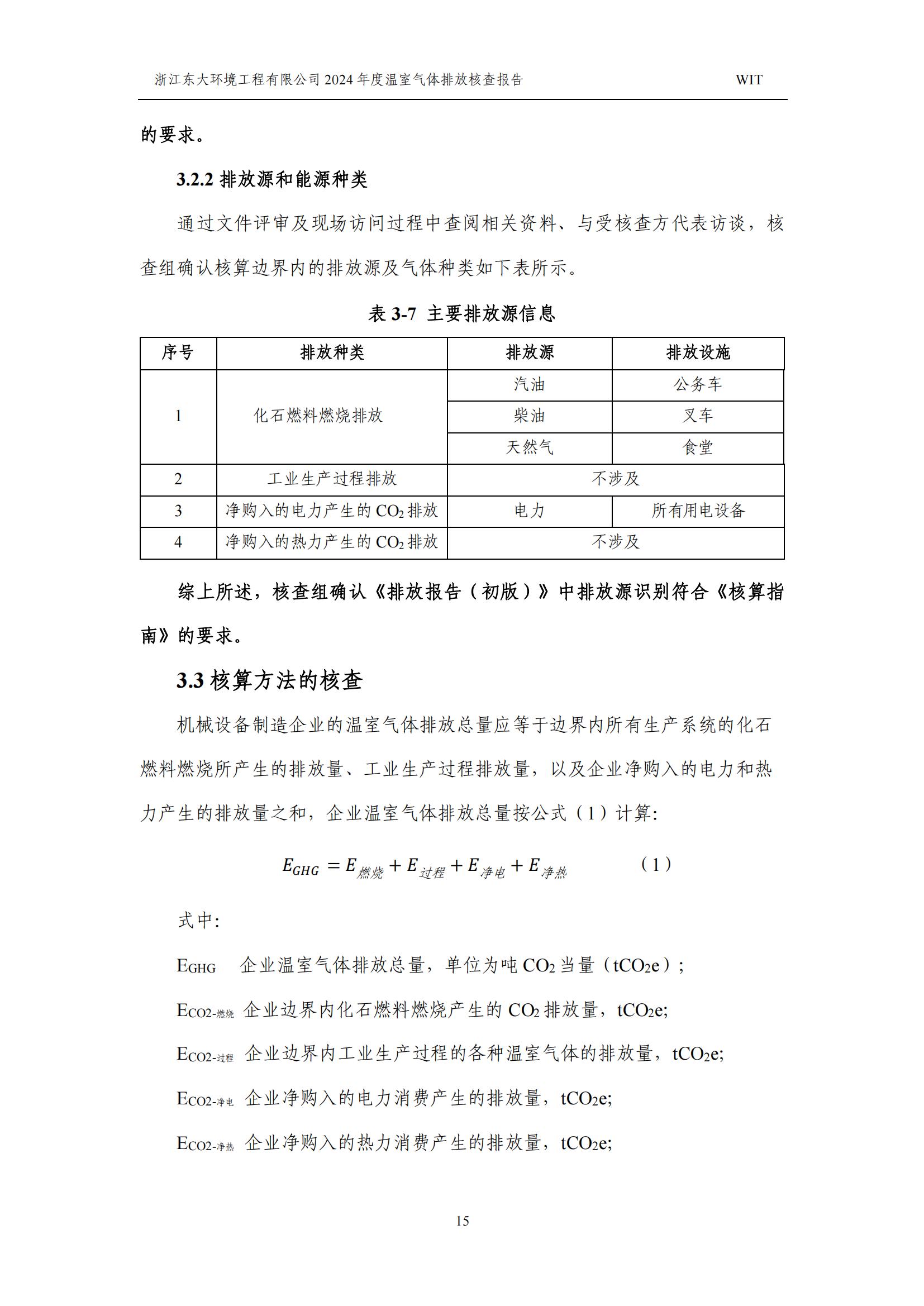 浙江東大環境工程有限公司2024年溫室氣體排放核查報告